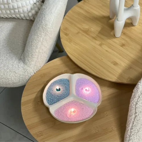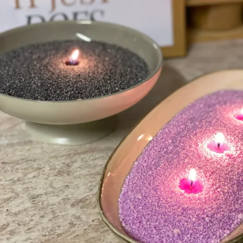A: Absolutely! Our Candle Sand is made from plant-based materials, making it clean-burning and safe for pets. While it’s non-toxic, we still recommend keeping it out of reach of pets, especially when lit. The unique pearled design also adds an extra layer of safety, as the candles self-extinguish if tipped over.